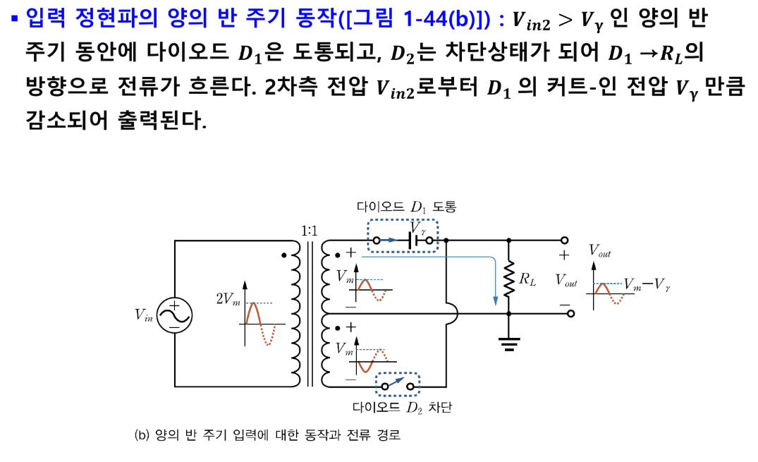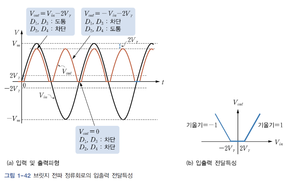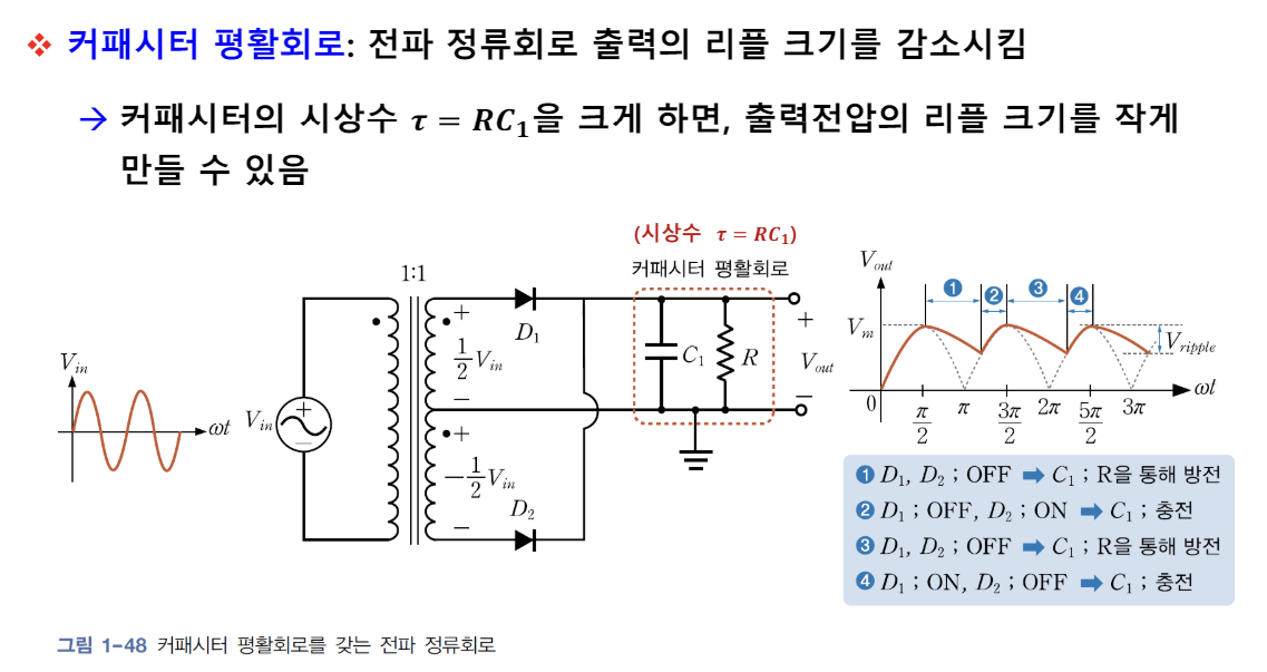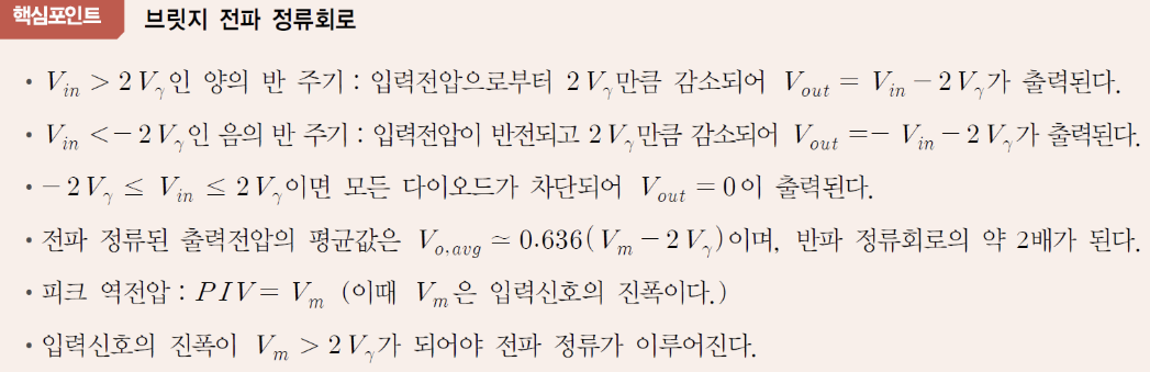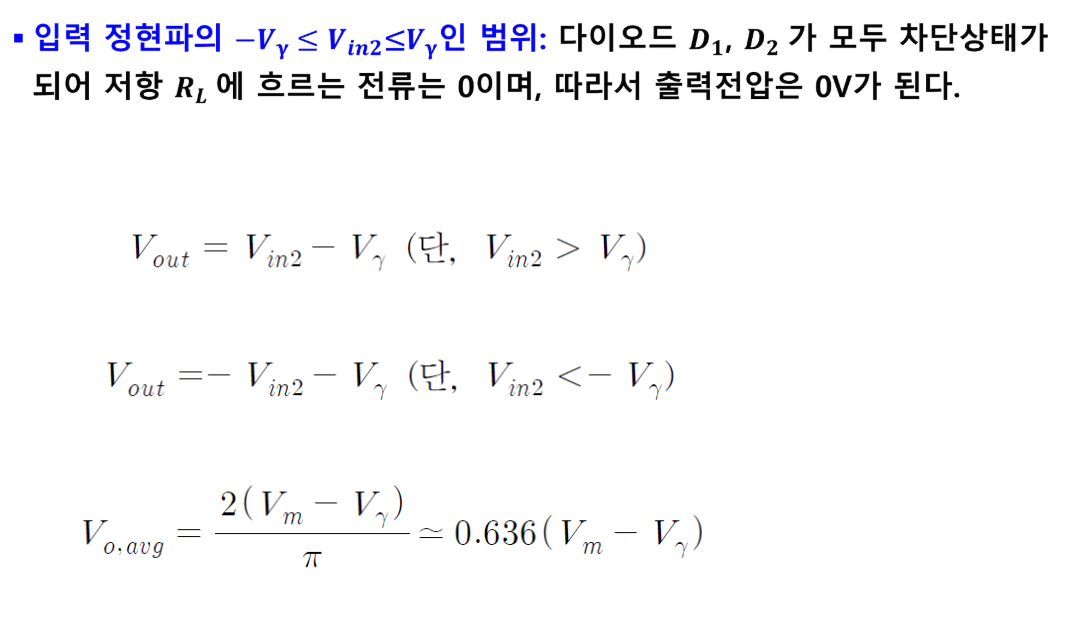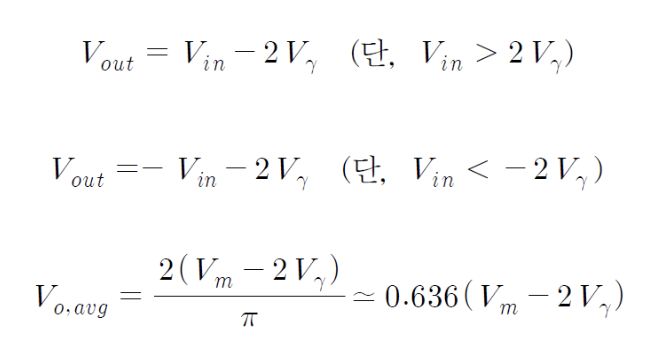 : 입력전압의 양과 음의 반 주기를 모두 통과시켜 전체 주기 동안 출력이 얻어지는 회로