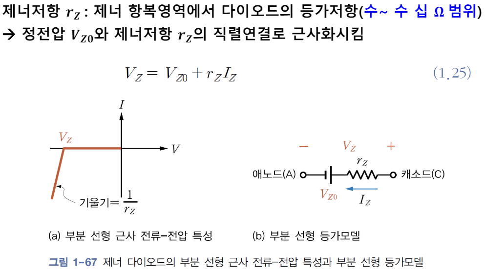 : 제너 항복영역에서 역방향 전압의 증가에 따른 전류 증가를 직선(𝟏/𝒓𝒁 )으로 근사화시킨 것