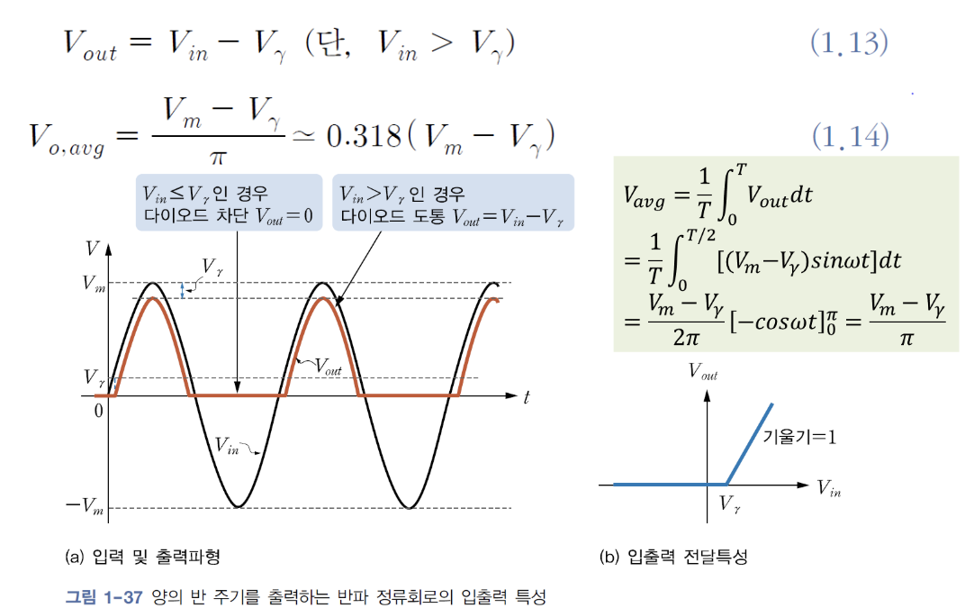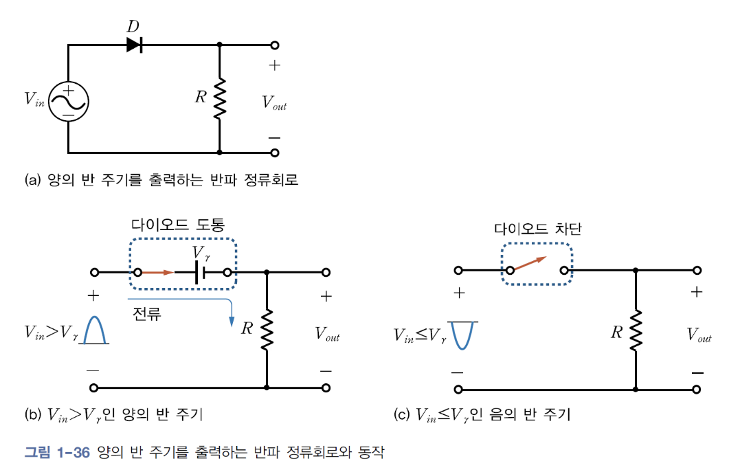 - 양의 반주기를 출력하는 반파 정류회로