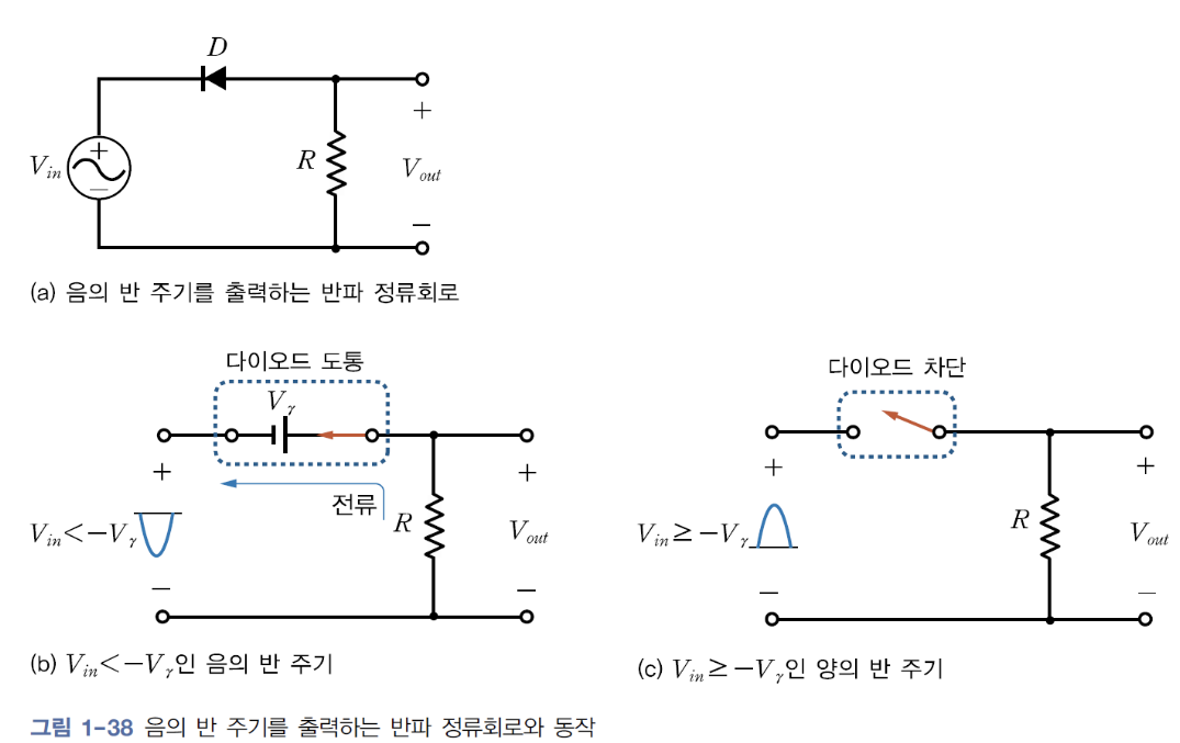 - 음의 반주기를 출력하는 반파 정류회로