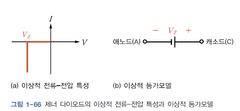 : 제너전압 𝑽𝒁에서 무한대의 전류가 흘러 제너 다이오드의 저항성분을 0으로 근사화시킨 것.